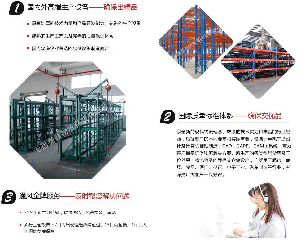 無錫嘉昌倉儲(chǔ)貨架有限公司是國內(nèi)現(xiàn)代倉儲(chǔ)物流技術(shù)開發(fā)、設(shè)計(jì)、生產(chǎn)和安裝的專業(yè)廠家,具有雄厚的技術(shù)力量和產(chǎn)品開發(fā)能力、先進(jìn)的生產(chǎn)設(shè)備、成熟的生產(chǎn)工藝以及完善的質(zhì)量保證體系。公司始終“以質(zhì)量求生存,以信譽(yù)求發(fā)展的”的經(jīng)營理念,放眼世界,積極引進(jìn)、吸收國際物流行業(yè)先進(jìn)技術(shù),憑借專業(yè)的制作經(jīng)驗(yàn)、優(yōu)秀的產(chǎn)品質(zhì)量,是國內(nèi)眾多企業(yè)首選的倉儲(chǔ)設(shè)備制造商之一。